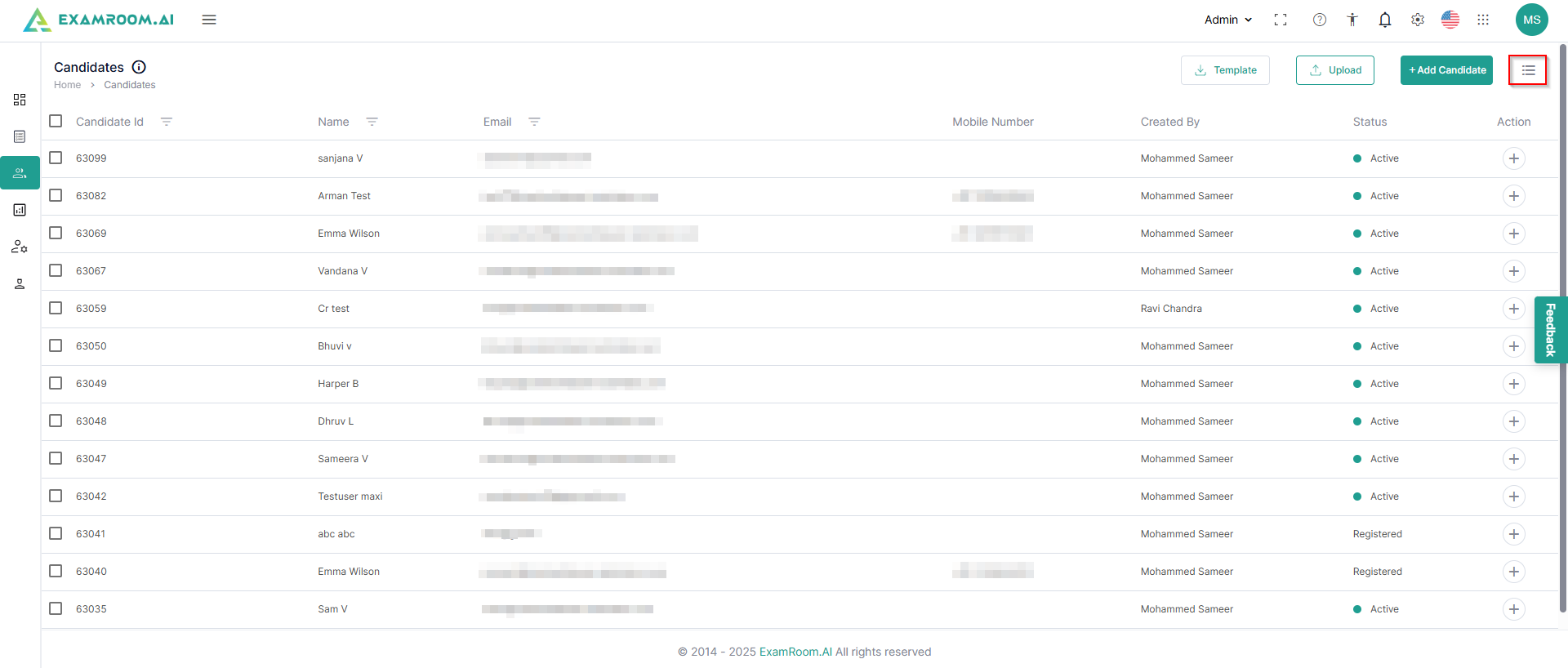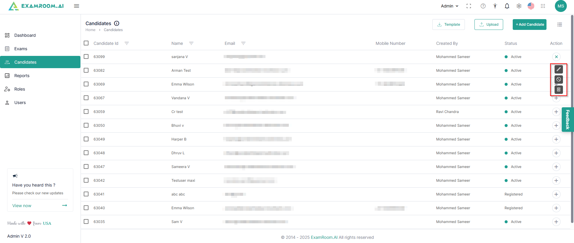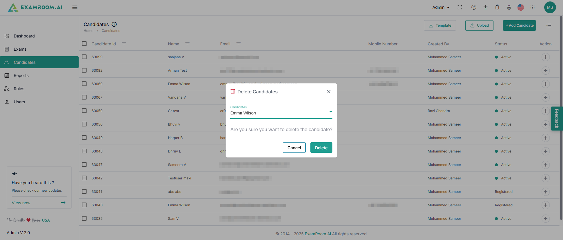 - Delete: Click to delete the candidate