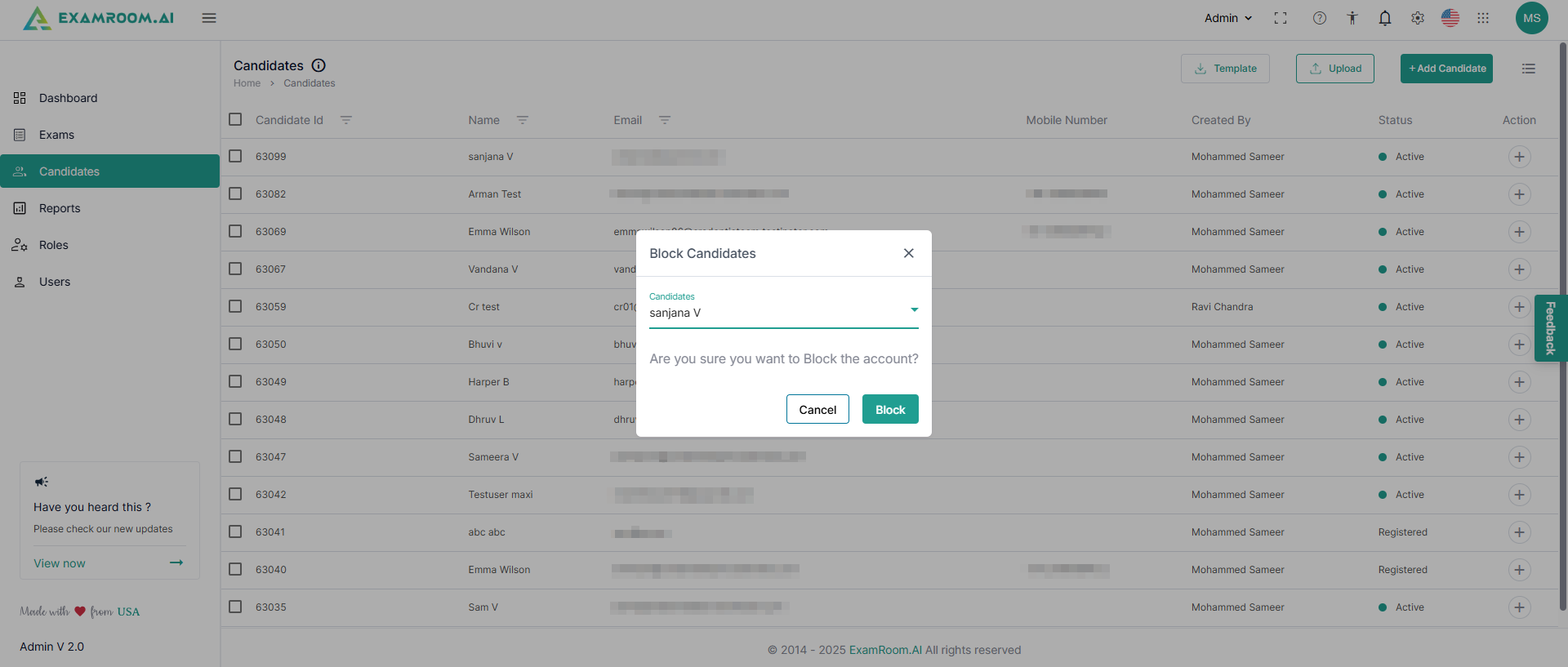 - Block: Click to block the candidate