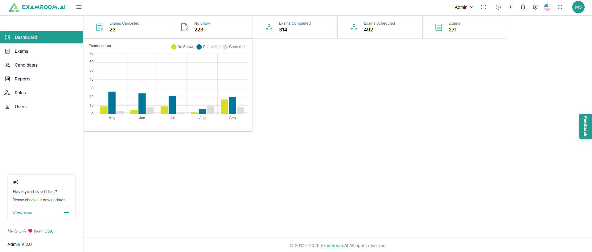 - Exams Completed: Total completed exams