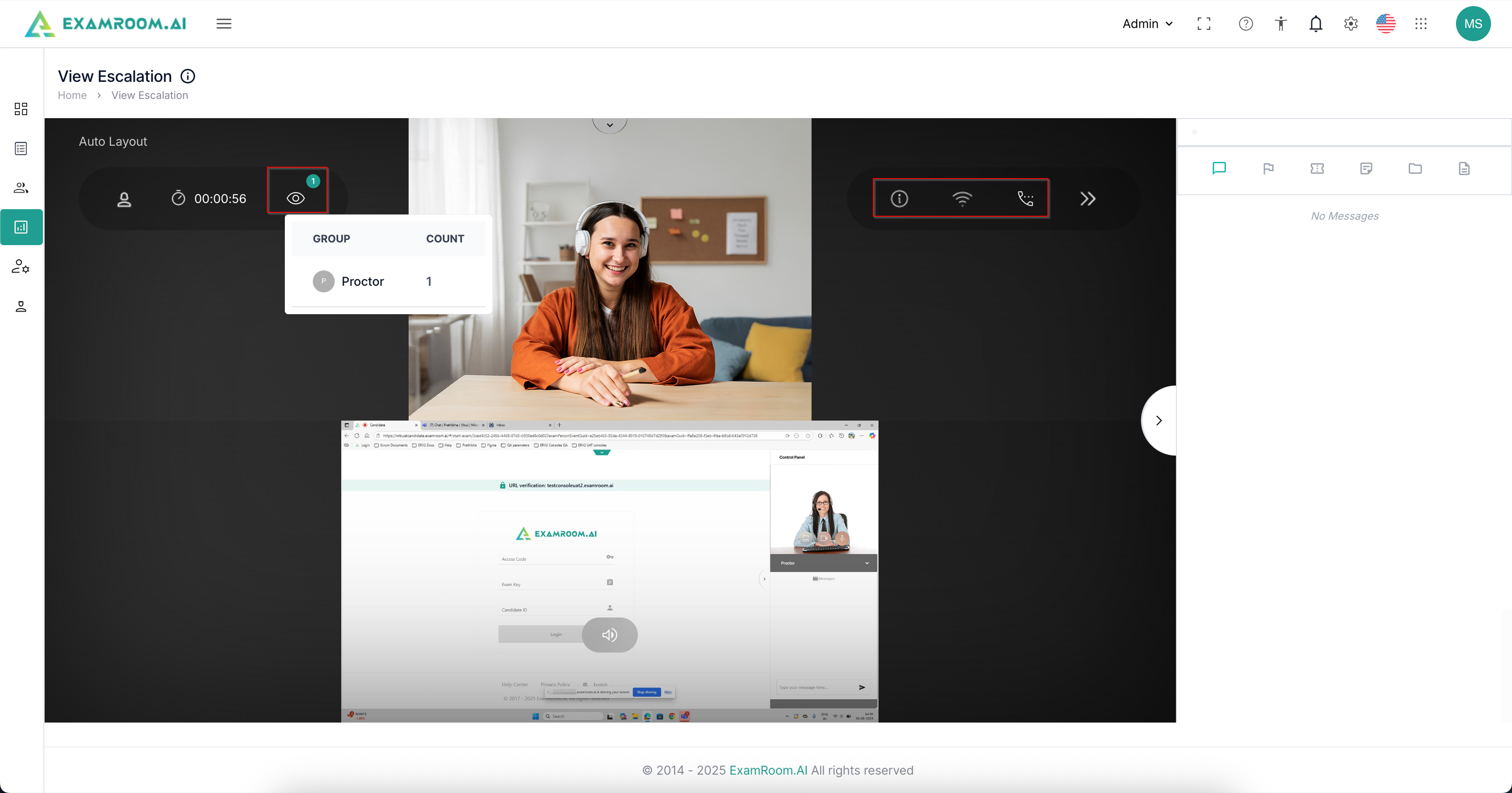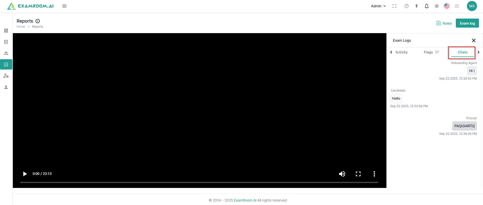 Chat: Click to check the chat between the agent and the candidate during the exam.