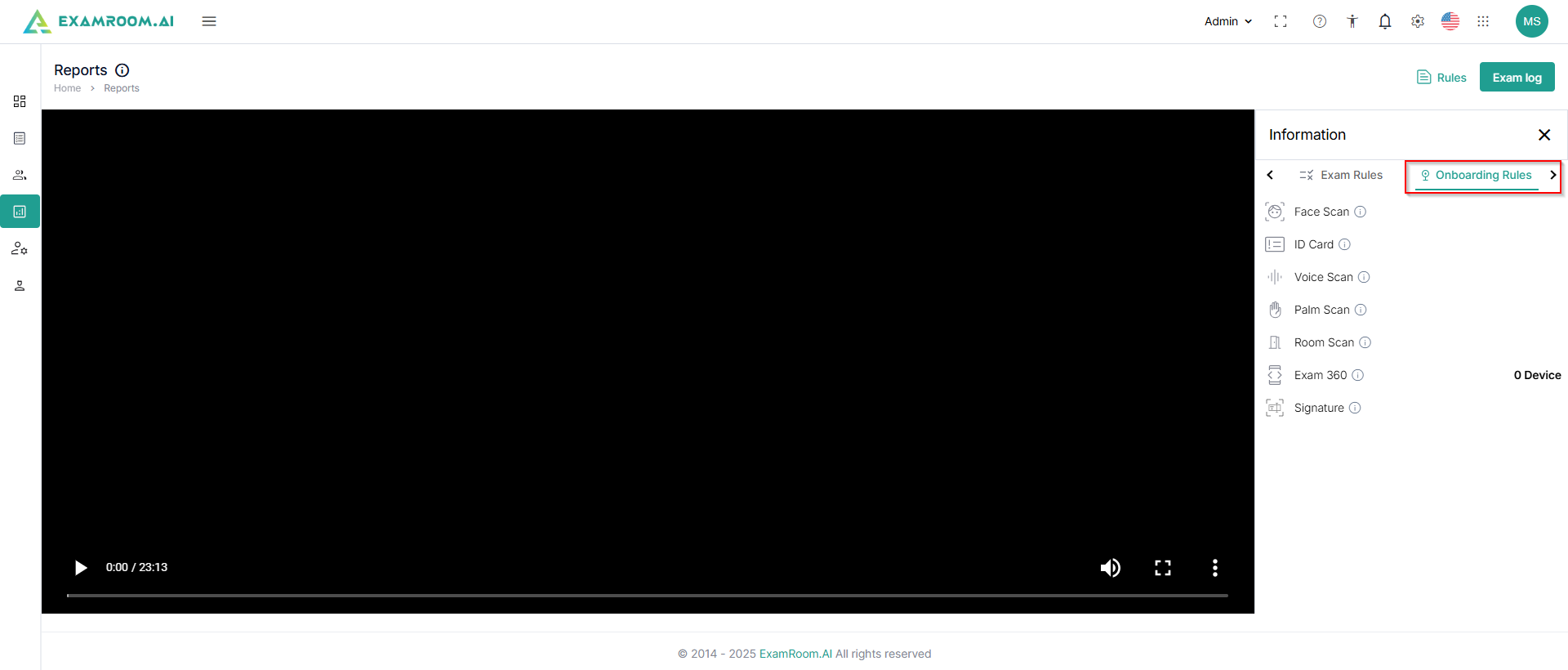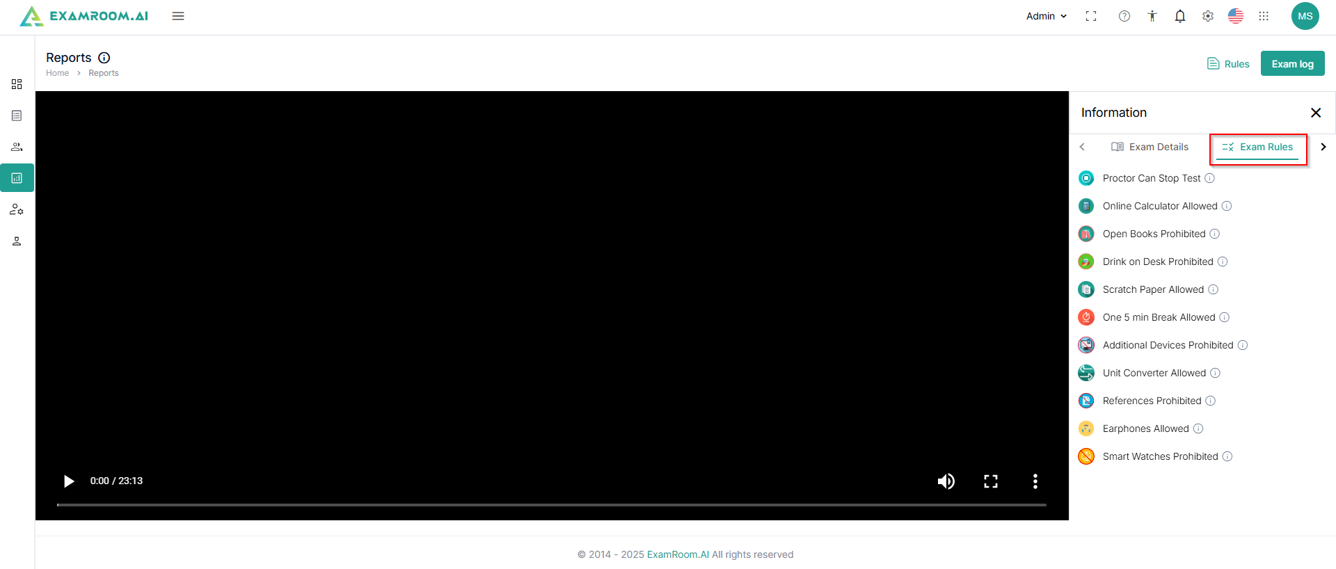 Select and play the video to see the recorded feed of the candidate during the examination.