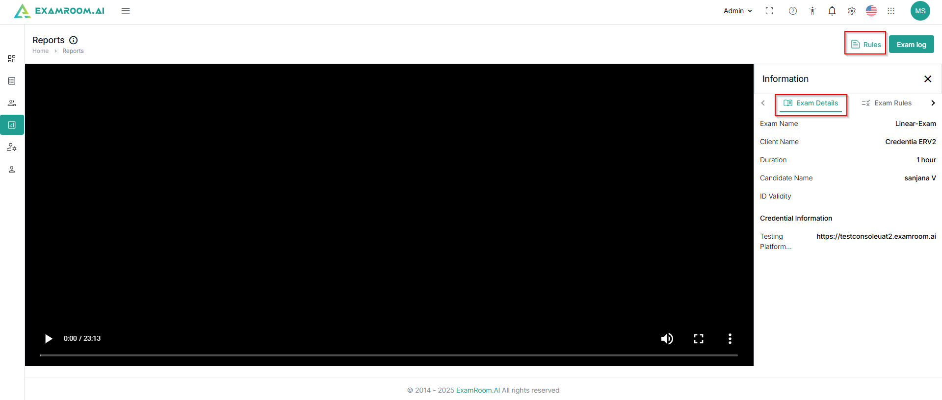 The detailed view of the candidate report has chapter-wise video clips on the right-side bar on the screen for each major activity done during the exam.