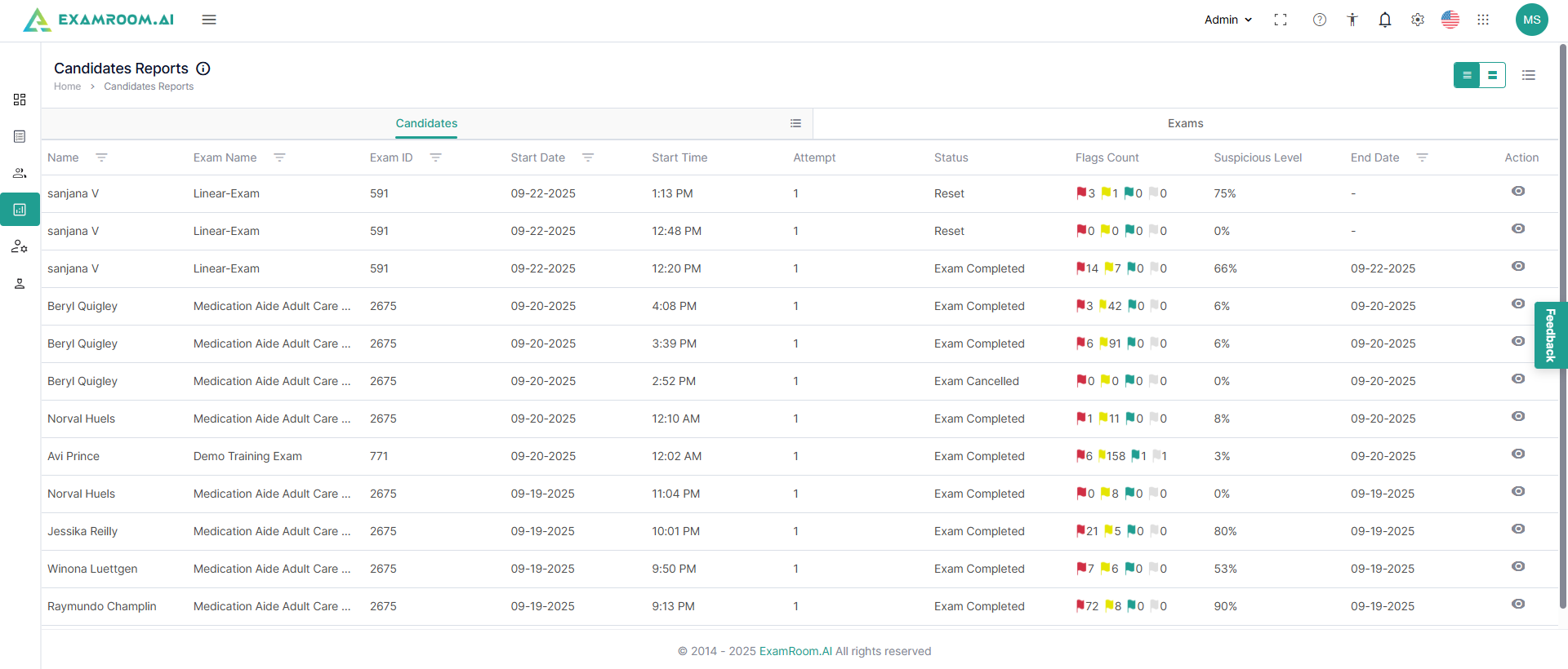 Here, for example, a candidate is shown attending the exam, where you can see the live feed of the candidate attending the exam.