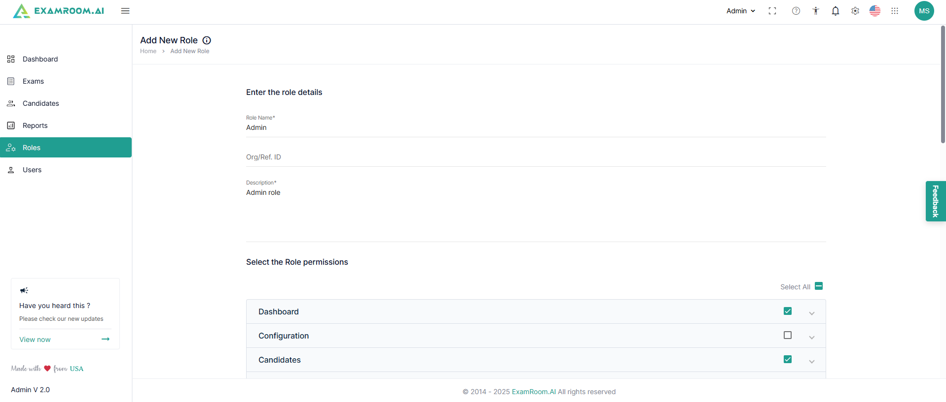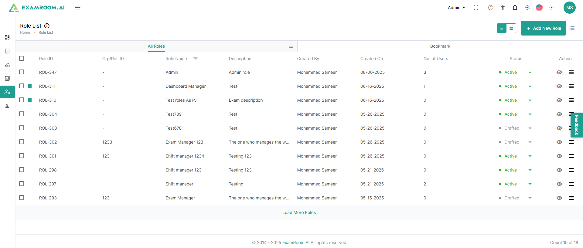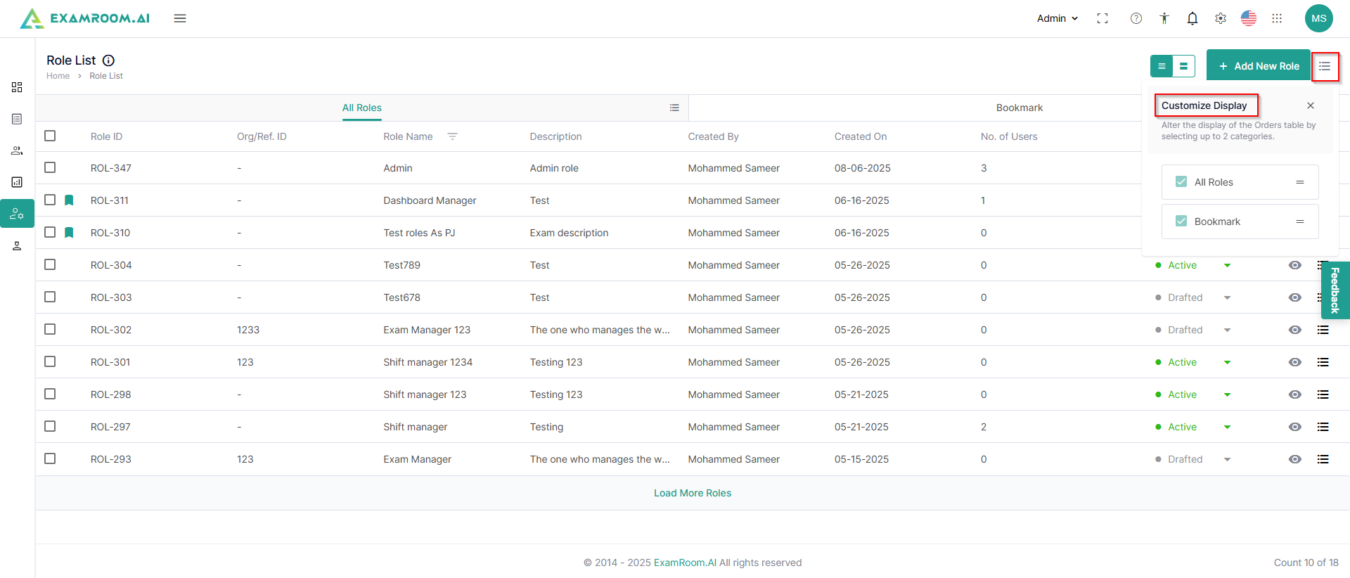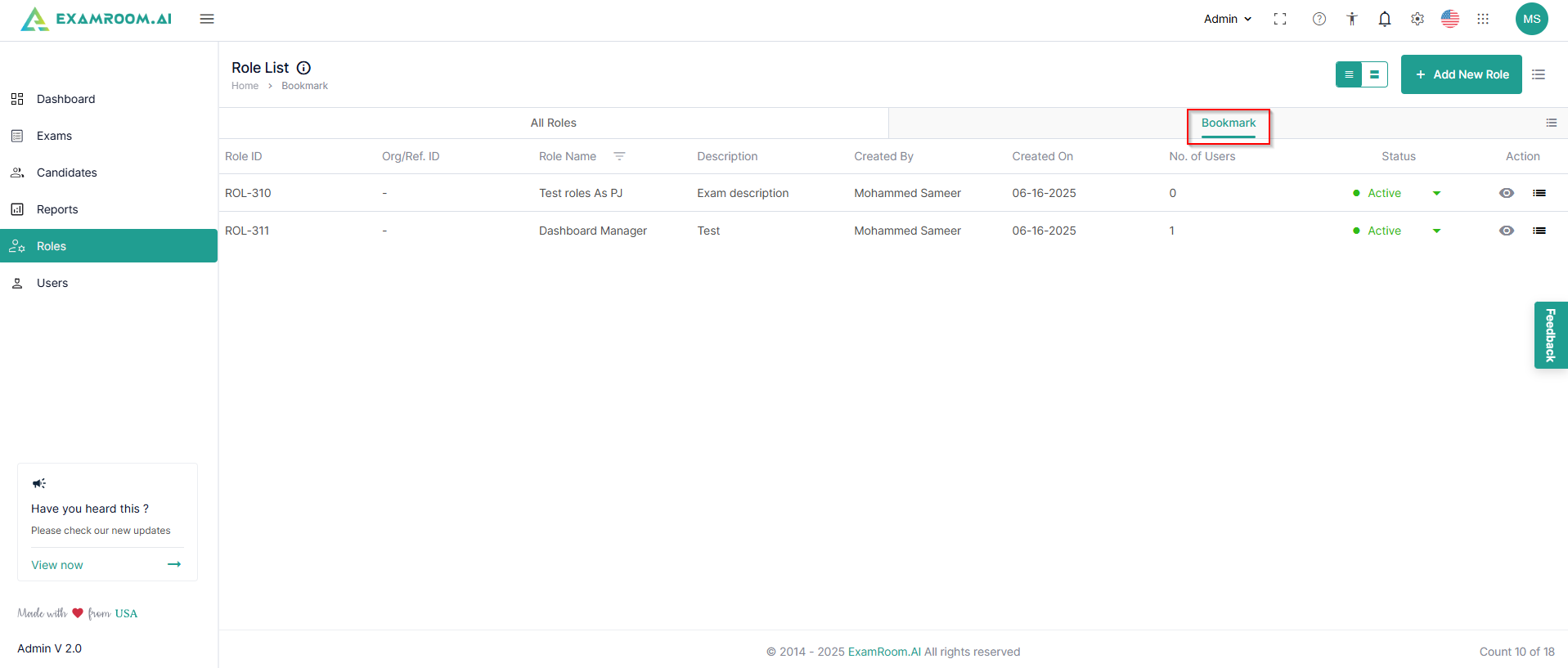 - Bookmark: Click to bookmark a created role