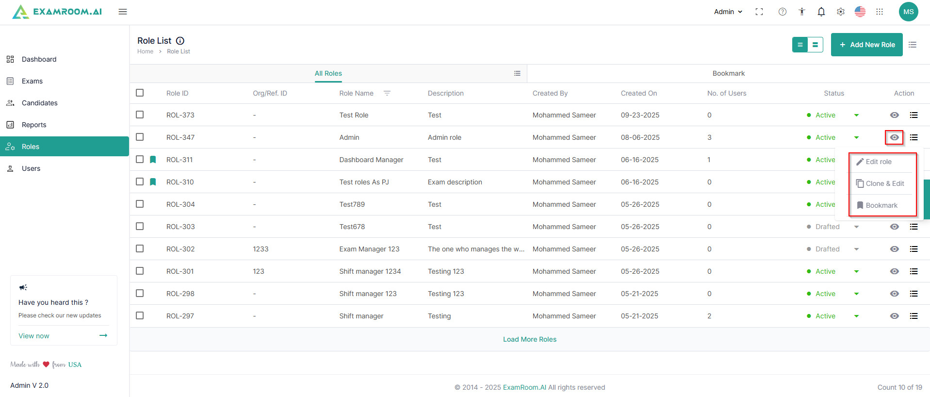 - Clone & Edit: Click to clone a created role and edit to create a same/similar role