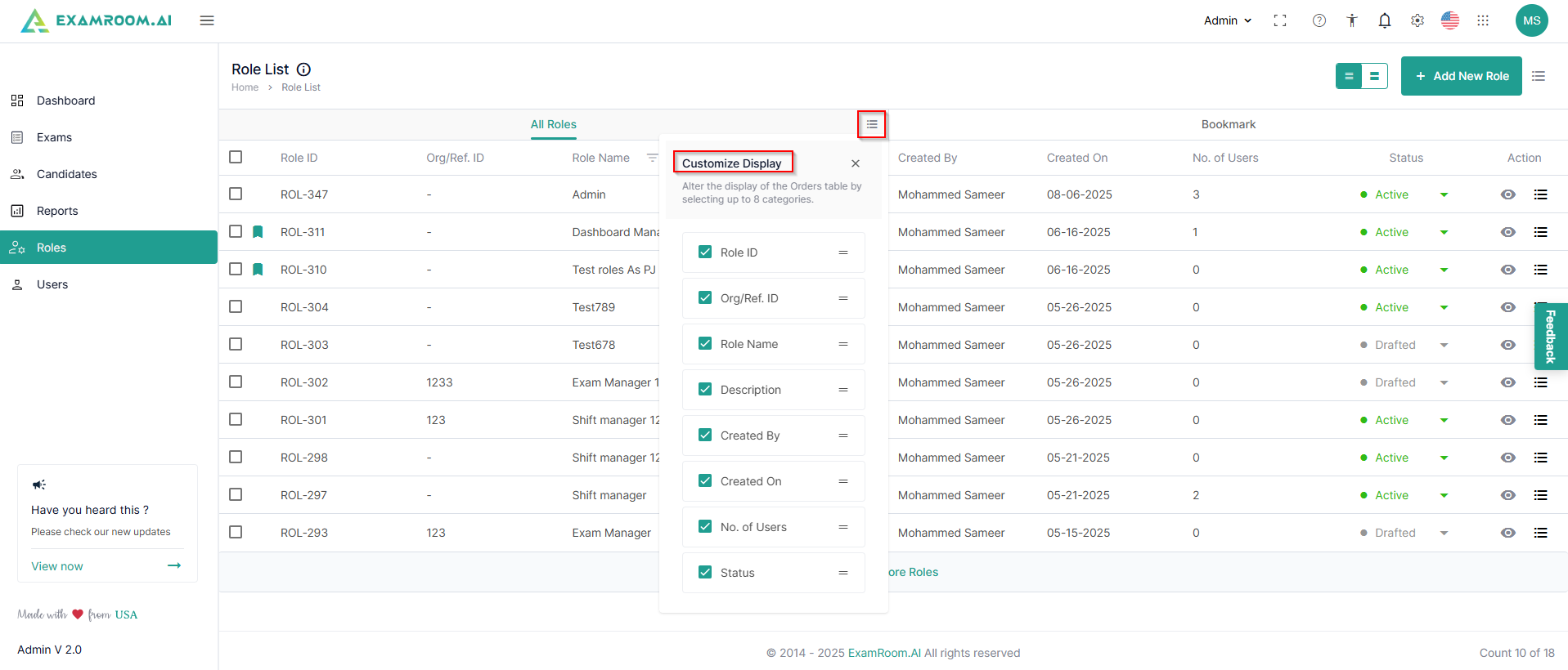 - There is also an option to view the role list in a grid.